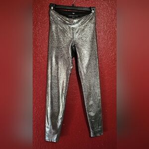 Metallic gray leggings from Heroine Sport. Modern and eye-catching.
