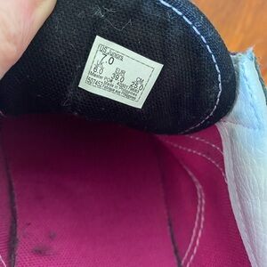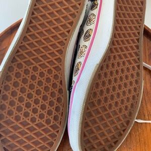 Chic Vans sneakers with heart and donut motifs. Classic black and white style. Perfect for casual wear.i wore them twice!