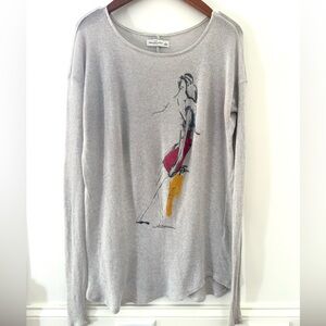 Abercrombie & Fitch Women Top Shirt Heather Gray Artistic Long Sleeve Tee Size L