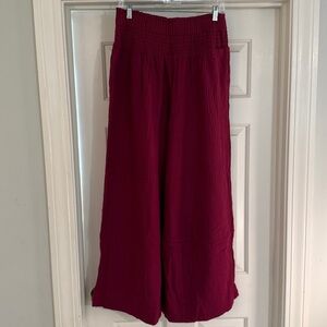 EUC Athropologie High Rise Elastic Waist Wide Leg Cotton Gauze Pants Sz M