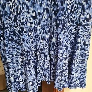 This elegant sundress by Michael Kors features a classic blue and white pattern, perfect for casual or work settings. Tiered skirt and lightweight fabric make it ideal for warm weather, combining style and practicality.
