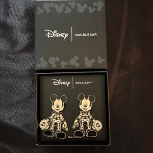 Unique Mickey Mouse skeleton earrings by BaubleBar. Features striking black and white design.