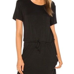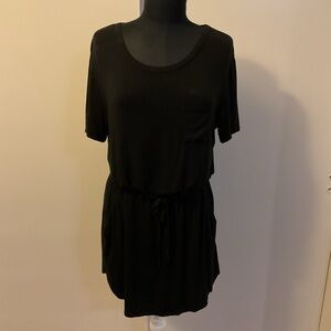 4. Cha Sor Black Shirt Dress Drawstring Waist Short Sleeve Keyhole Back Size M
