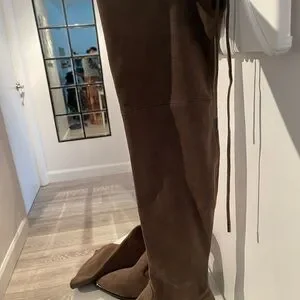 Step out in style with these elegant brown suede over-the-knee boots. Perfect for any occasion, they offer both comfort and sophistication.