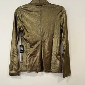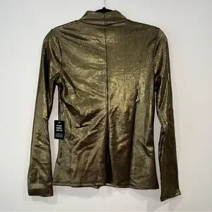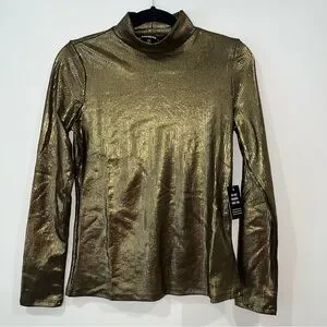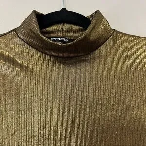 Express Metallic Shimmer gold ribbed long sleeve mock neck top size M NWT