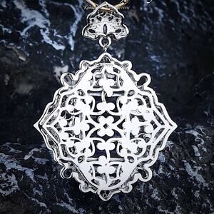 White gold plated large amethyst gemstone, charm necklace. Spiral, swirl design with an antique, Victorian design. Gift for mom, wedding, bridal, anniversary present. Comes with either 18” silver or gold chain necklace, your choice. Please message if you need a longer necklace only longer in silver.