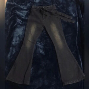 Pantete Womens High-Rise Bell-Bottom Black Denim Jeans Flare With Wide Leg & Belt in Size Medium. These jeans are so flattering on. They hug you in all of the right places.