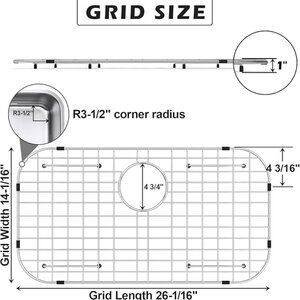•	SUPERIOR PRODUCT: Sink Grid with Stainless Steel Construction and Center Drain Hole Design. Sink Protector Grid with Protective Rubber Feet and Bumpers to Protect the Sink Surface from Scratching