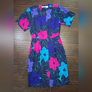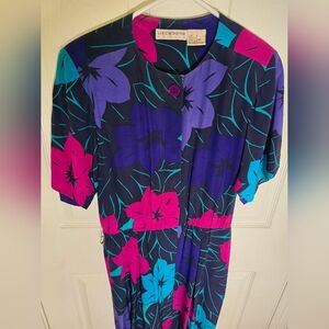 Liz Claiborne Womens Vintage Floral Button Up Silk Dress Size 8