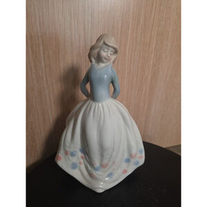 Vintage Multicolor Porcelain Figurine Girl Blue & White Dress 5-1/4" Tall