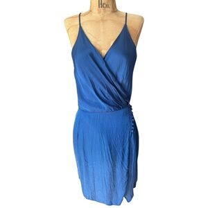 Young Fabulous & Broke Deep Blue Satin Wrap Mini Dress EUC M