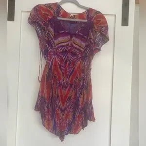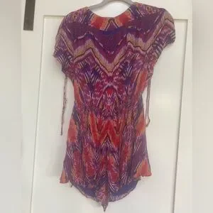 Free People all night purple red abstract romper sz small Condition: Excellent