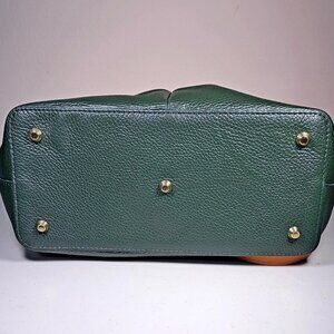 Stunner and Hard to find "Made in Italy" Green & Tan Pebbled Leather Tote.