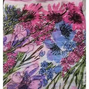 VERA NEUMANN Vintage Linen PURPLE BLUE PINK FLORAL Neck Scarf Shawl