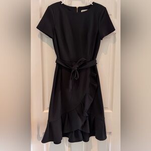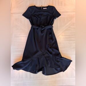Calvin Klein Boat Neck Ruffle Hem Faux Wrap Dress – Black – Size 4 – Like New