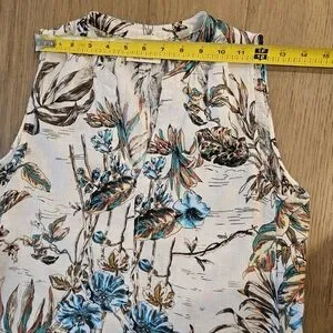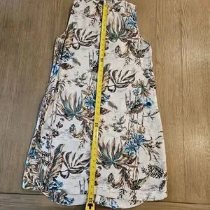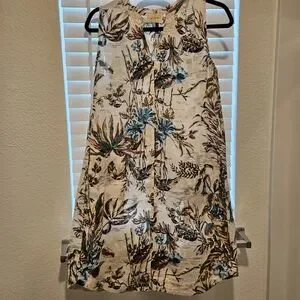 Elie Tahari Ivory Floral Pattern Sleeveless 100% Linen Dress Woman Size S