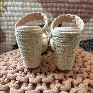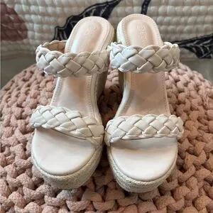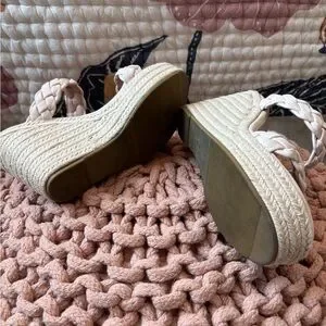 Stylish braided platform wedge sandals in cream. Only worn once. Easy slip on and cute with boot cut jeans.