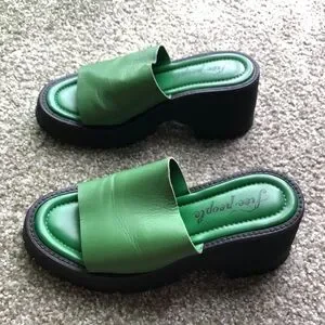 Free People Size EU 38 Winona Kelly Green Leather Slip On Wedge Sandals