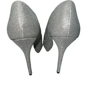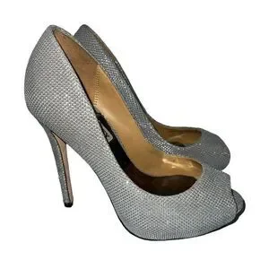 Badgley Mischka Ponderosa Silver Sparkle Formal Shoes Heels 5