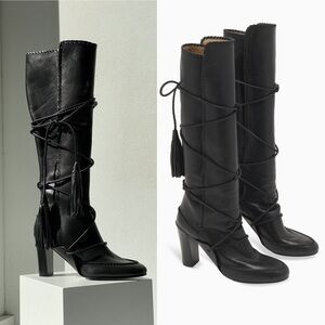 Ulla Johnson Atlas Moccasin Raven Black Bohemian Wrap Braided Knee Boots 5