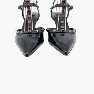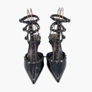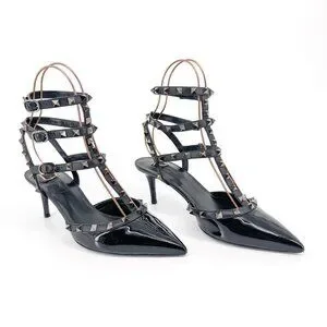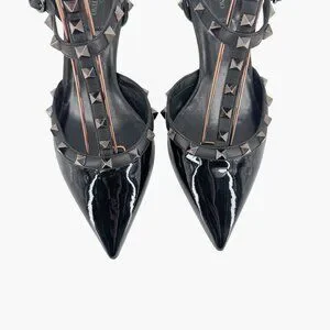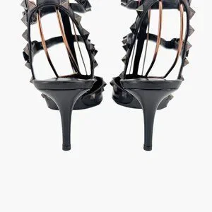 Valentino Rockstud Black Patent Leather Caged Strappy Pumps Heels Size 40 US 10