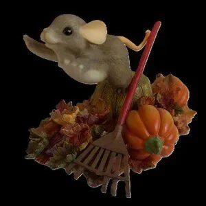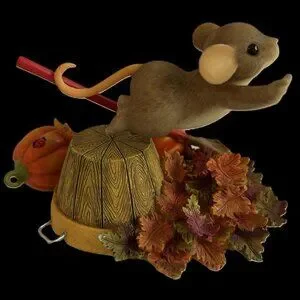 • Mouse diving off of wooden basket into pile of just-raked autumn leaves