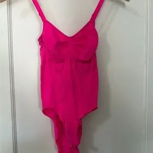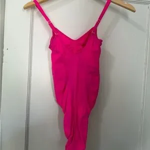 Vibrant pink bodysuit for sleek shaping. Offers comfort and style. Ideal for daily wear.