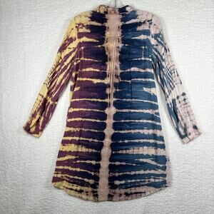 Mono B Tunic Shirt Dress Women's Size L Pink Brown & Blue Tie Dye Knee Length
