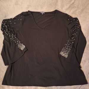 ROAMAN'S Black Long Sleeve Blouse Sequin Sleeves Plus size 20W