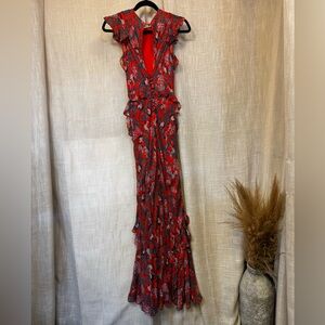 SALONI Tamara B Maxi Dress Gown in Ruby Jungle Monkey Size US 2