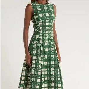 Stine Goya Gathered Midi dress - Green Windowpane