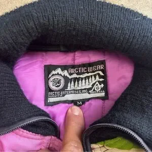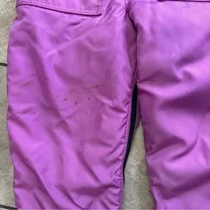 Embrace the slopes with this stylish lavender ski suit . Designed for warmth and comfort, it's perfect for your winter adventures. Does have some staining on the legs and back of suit but still in good condition buckle is missing as well!