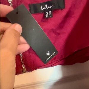 Elegant Lulu's gown in a deep red wine. Perfect for semi-formal, formal, black tie event, wedding, or dance. New with tags, never worn. Past the return deadline. See Lulus for size chart. https://www.lulus.com/products/got-the-glam-wine-red-pleated-cutout-maxi-dress/1679576.html