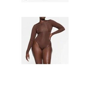 Skims new with tags bodysuit snaps at gusset long sleeve jelly sheer intimates crew neck thong sawartski crystals throughout size XL pit to pit 17 stretch sample hand wash sample