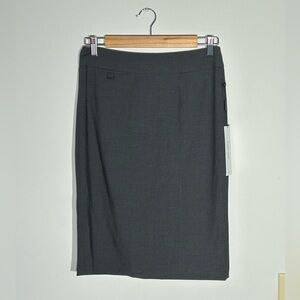 Timeless Calvin Klein charcoal suit jacket and skirt. Perfect for interview or professional office attire. Jacket comes with extra button. Skirt has original price tag. Both pieces are new.