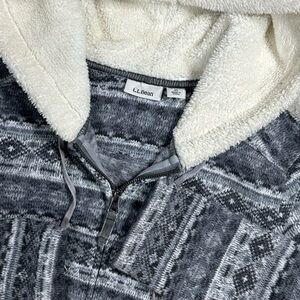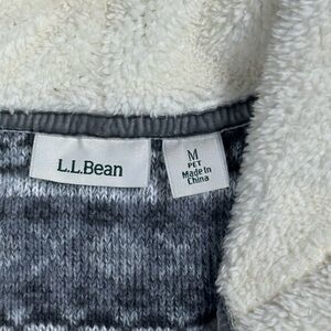 LL Bean Womens Medium Gray Fair Isle Hoodie Fleece Sweater Full Zip Long Sleeve