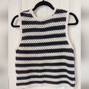 Chic and stylish, this striped crochet sleeveless top is perfect for any casual outing. The navy and white design adds a classic touch to your wardrobe.