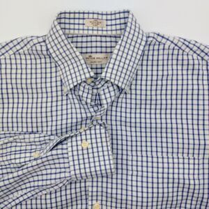 Peter Millar Crown Soft Men's Large Button Down Silk Blend Shirt Blue Checkered
