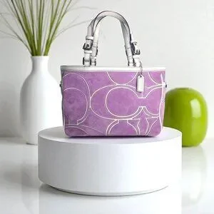 Vintage COACH Optic Signature Tote Handbag in purple/ lavender Suede