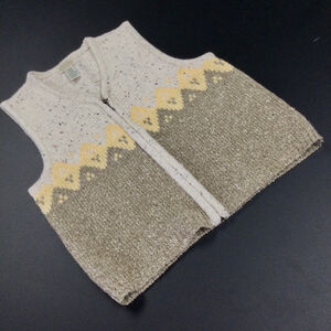 Vintage Women's St. John's Bay Vest Size L Beige Green Knit Zip Up Sleeveless
