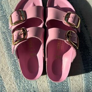 Birkenstock Women big buckle size 7.5/38 high shine Pink fondant Arizona sandals