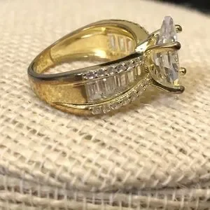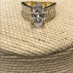 NIB Cubic Zirconia Marquise Engagement Set in Sterling Silver. Marquise Cut Cubic Zirconia center stone surrounded by baguette and round cut cubic zirconia accents creating a lavish design.