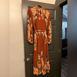 Chic long sleeve dress with vibrant floral design. Features a flowing silhouette. Ideal for stylish outings.