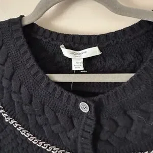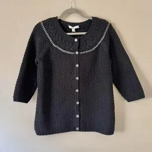 NWT Vintage Black Knit Cardigan Silver Chain Liz Claiborne Medium