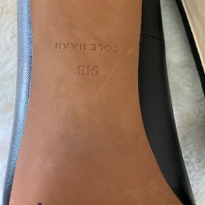 Sophisticated leather footwear by Cole Haan. Features a sleek black exterior with a brown sole.