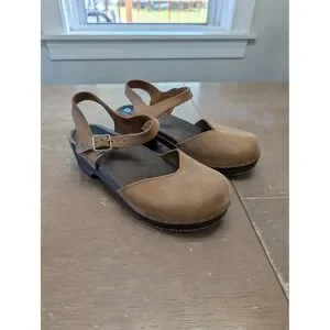 Sandgrens Saragasso Classic Clogs Women's 39 Tan Leather Wooden MaryJane Swedish