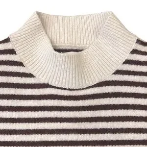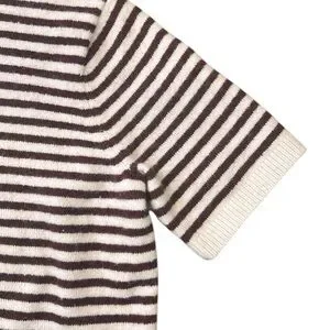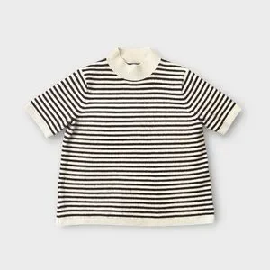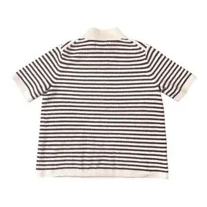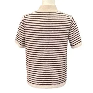 LOFT Mock Neck Short Sleeve Wool White Striped Pullover Sweater Women's Size Medium