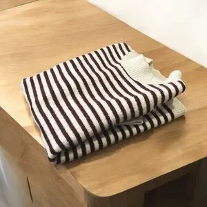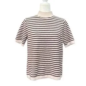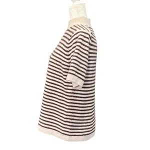 LOFT Mock Neck Short Sleeve Wool White Striped Pullover Sweater Women's Medium