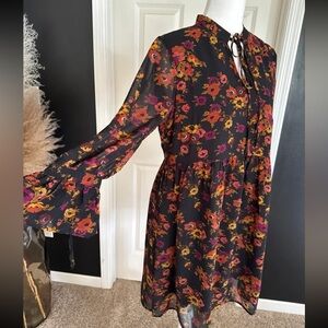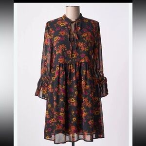 Molly Bracken Floral Mini Dress with bell tie sleeves size Medium