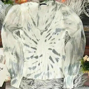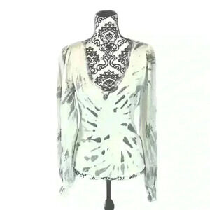 Maven West Gray Tie Dye knit Sheer Sleeve Plunge Neckline Folk Lore Top, S